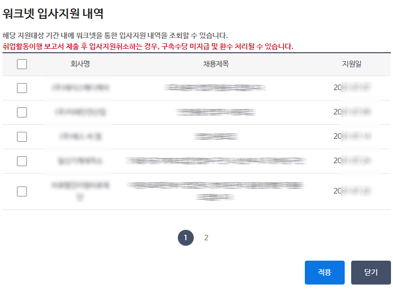 구촉수당 취업활동이행 등록 워크넷입사지원 구직활동등록 메뉴생성및 방법